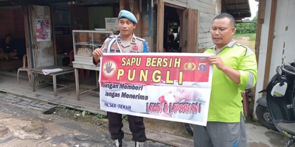 Polres Gunung Mas – Personel Polsek Rungan, Polda Kalteng, Gunung Mas, Kalimantan Tengah, mengedukasi kepada masyarakat setempat tentang bahaya pungutan liar. Langkah ini dilakukan sebagai upaya keras untuk memerangi praktik ilegal ini dan memberikan informasi kepada masyarakat mengenai hak-hak mereka…