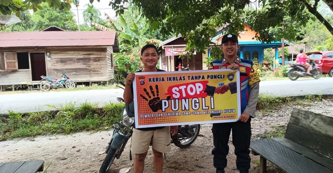 Polres Gunung Mas – Personel Polsek Rungan, Polda Kalteng, Gunung Mas, Kalimantan Tengah, mengedukasi kepada masyarakat setempat tentang bahaya pungutan liar. Langkah ini dilakukan sebagai upaya keras untuk memerangi praktik ilegal ini dan memberikan informasi kepada masyarakat mengenai hak-hak mereka serta konsekuensi hukum yang terkait dengan pungutan liar. Selasa (5/3/24) sekira pukul 11.00 WIB.