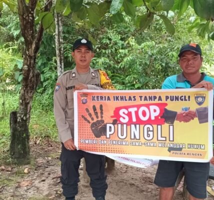 Polres Gunung Mas – Personel Polsek Sepang, Polda Kalteng, Gunung Mas, Kalimantan Tengah, mengedukasi kepada masyarakat setempat tentang bahaya pungutan liar. Langkah ini dilakukan sebagai upaya keras untuk memerangi praktik ilegal ini dan memberikan informasi kepada masyarakat mengenai hak-hak mereka serta konsekuensi hukum yang terkait dengan pungutan liar. Minggu (17/3/24) sekira pukul 11.00 WIB.