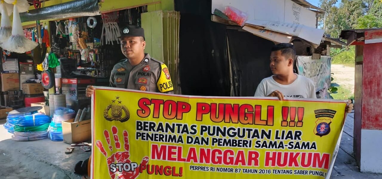 Polres Gunung Mas – Personel Polsek Sepang, Polda Kalteng, Gunung Mas, Kalimantan Tengah, mengedukasi kepada masyarakat setempat tentang bahaya pungutan liar. Langkah ini dilakukan sebagai upaya keras untuk memerangi praktik ilegal ini dan memberikan informasi kepada masyarakat mengenai hak-hak mereka serta konsekuensi hukum yang terkait dengan pungutan liar. Kamis (21/3/24) sekira pukul 11.00 WIB.