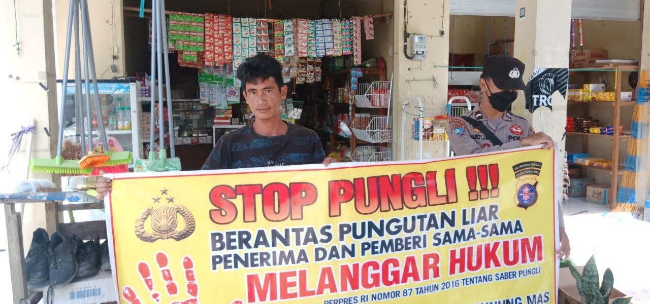 Polres Gunung Mas – Personel Polsek Sepang, Polda Kalteng, Gunung Mas, Kalimantan Tengah, mengedukasi kepada masyarakat setempat tentang bahaya pungutan liar. Langkah ini dilakukan sebagai upaya keras untuk memerangi praktik ilegal ini dan memberikan informasi kepada masyarakat mengenai hak-hak mereka serta konsekuensi hukum yang terkait dengan pungutan liar. Kamis (28/3/24) sekira pukul 11.00 WIB.