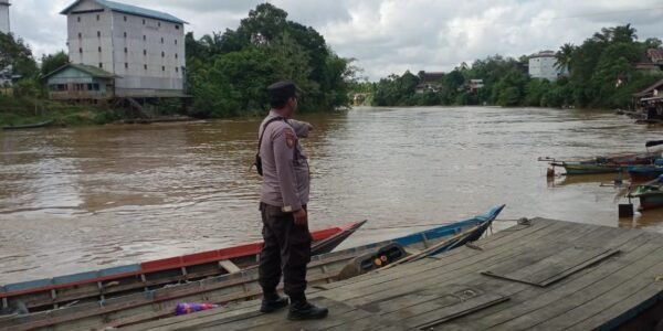 Personel Polsek Kahut Siap Siaga dalam Menghadapi Perubahan Debit Air