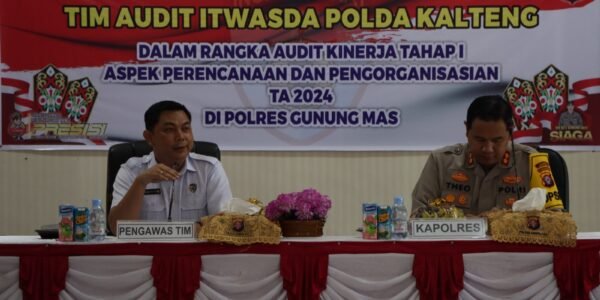Polres Gunung Mas -Tim Inspektorat Pengawasan Daerah (Itwasda) Polda Kalteng melakukan audit kinerja tahap satu di Polres Gunung Mas. Audit ini bertujuan untuk menilai kinerja Polres Gunung Mas dalam berbagai aspek, dengan fokus pada perencanaan dan pengorganisasian. Tim Itwasda Polda…