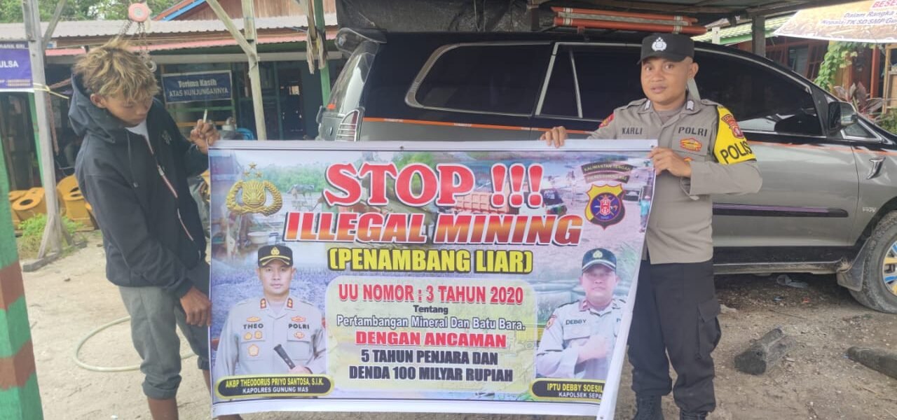 Polres Gunung Mas – Polsek Sepang, Polda Kalteng, Gunung Mas, Kalimantan Tengah, terus meningkatkan upaya sosialisasi untuk menginformasikan masyarakat tentang bahaya lingkungan yang ditimbulkan oleh aktivitas tambang ilegal. Sabtu (20/4/24) sekira pukul 11.45 WIB.