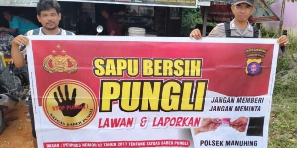 Polres Gunung Mas – Personel Polsek Manuhing, Polda Kalteng, Gunung Mas, Kalimantan Tengah, mengedukasi kepada masyarakat setempat tentang bahaya pungutan liar. Langkah ini dilakukan sebagai upaya keras untuk memerangi praktik ilegal ini dan memberikan informasi kepada masyarakat mengenai hak-hak mereka…