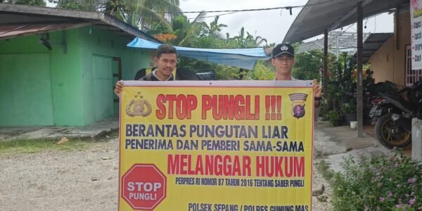Polres Gunung Mas – Personel Polsek Sepang, Polda Kalteng, Gunung Mas, Kalimantan Tengah, mengedukasi kepada masyarakat setempat tentang bahaya pungutan liar. Langkah ini dilakukan sebagai upaya keras untuk memerangi praktik ilegal ini dan memberikan informasi kepada masyarakat mengenai hak-hak mereka…